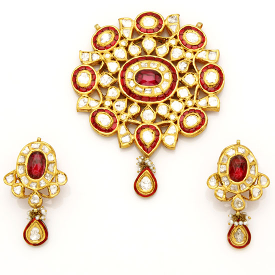 Polki Uncut Diamond Jewelry -> Pendant Sets